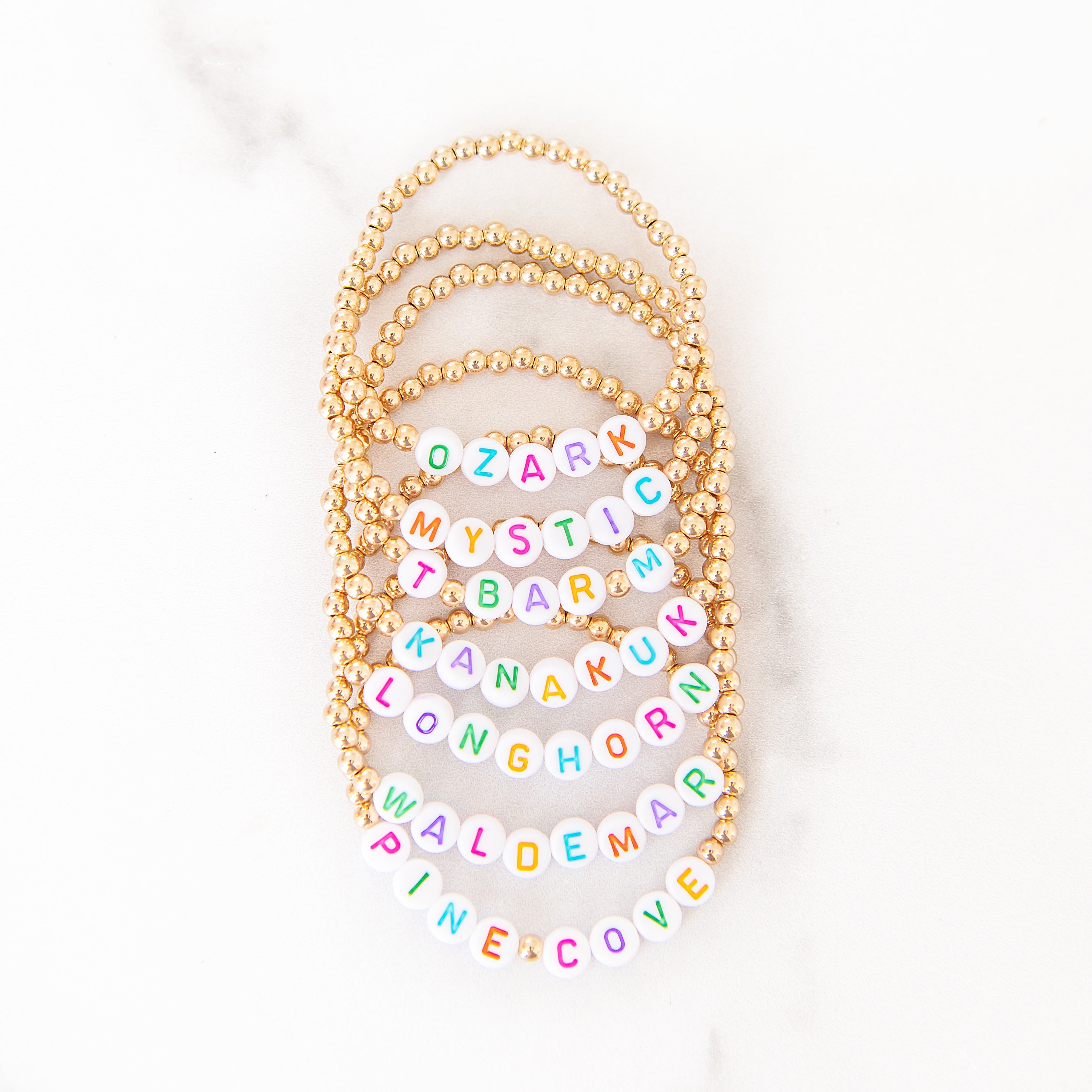 Personalized 4 Mm Gold Beaded Rainbow Letter Bracelet Golden Thread Inc